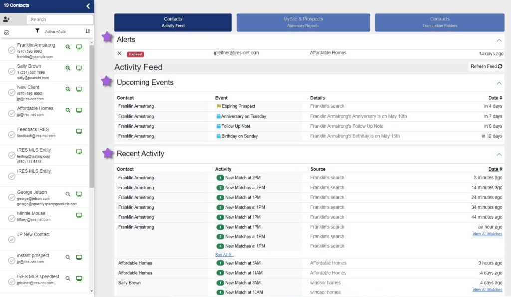 IRESis.com to an email recipient. These Alerts will appear on the top of the Contacts Dashboard Activity Feed for up to 2 weeks. Every Alert will be accompanied by an email error status such as Deferred, Expired, or Bounced.