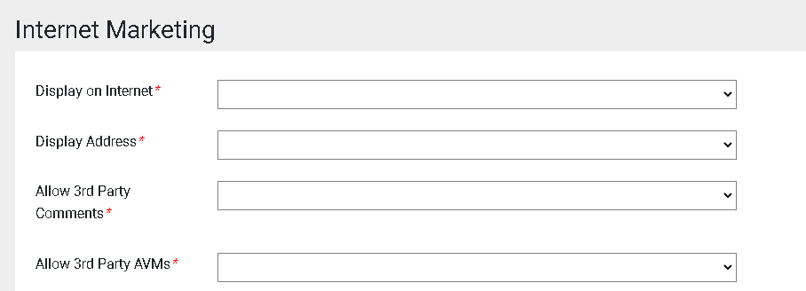 During listing input “Step 3: Miscellaneous Information” there is a new section titled “Internet Marketing.” This section will have four required Yes or No questions that can be answered on a per-listing-basis.