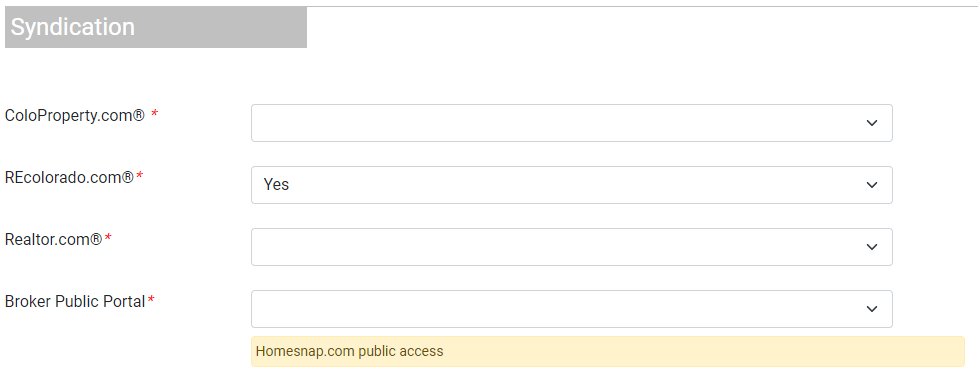 On September 21st, 2022, IRES will be updating those listings where no choice was selected to “Yes.” This means listings which previously did not have a “Yes” or “No” to syndicate the listing to REcolorado.com, will now default to “Yes.”